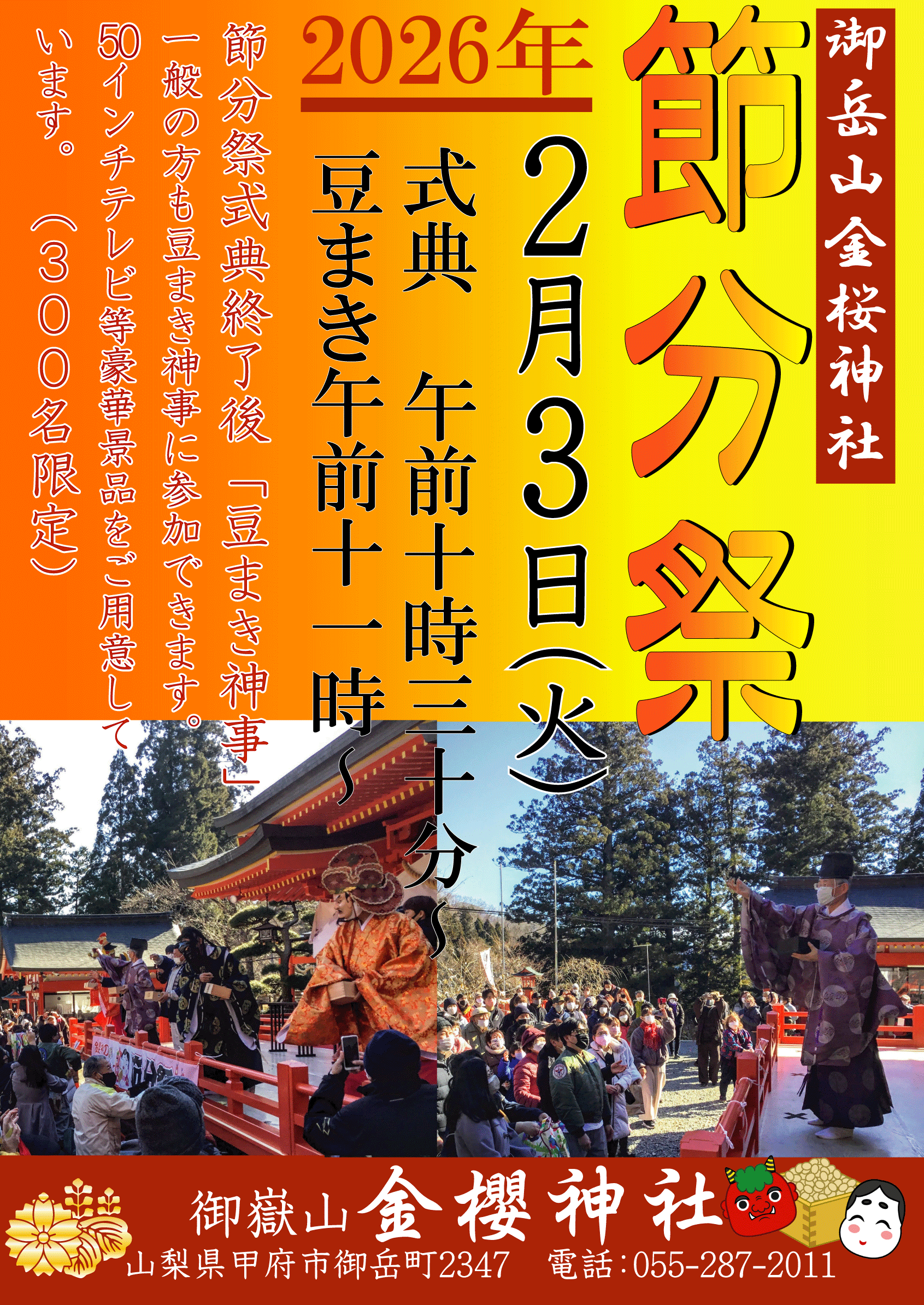 そして2月3日(火)、いよいよ「節分祭」。鬼を追い払い、福を呼び込むこのイベントは、子どもから大人まで楽しめる行事です!お友達やご家族を誘って、ぜひご参加ください。