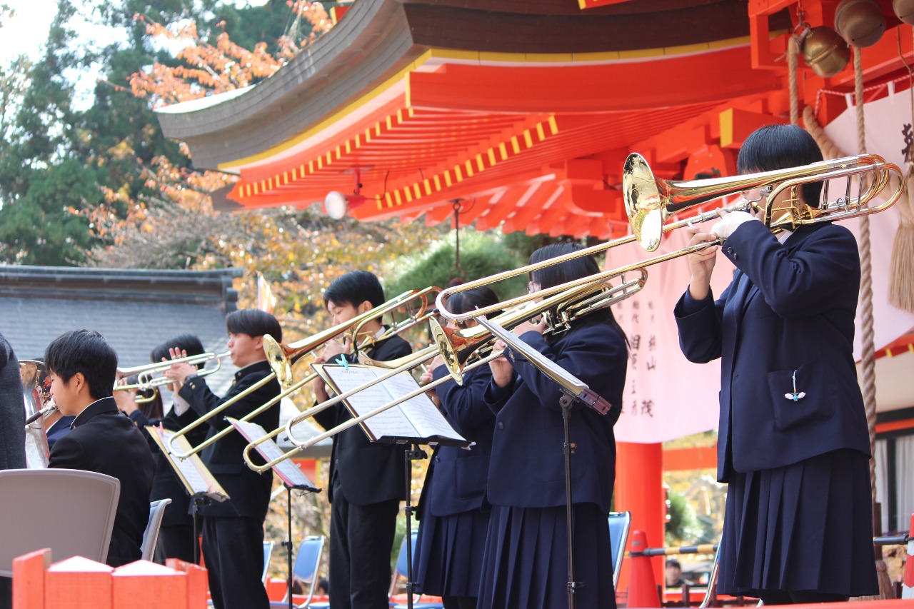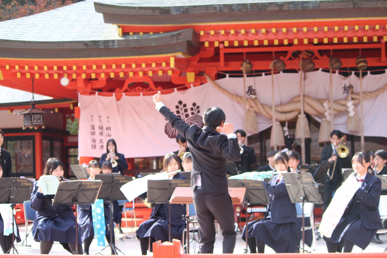 2025年11月8日 金櫻神社 秋の音楽祭 山梨県立甲府第一高等学校応援団吹奏楽部の奉納演奏 2025年11月08日 14:51 2025年11月8日 金櫻神社 秋の音楽祭 山梨県立甲府第一高等学校応援団吹奏楽部の奉納演奏が行われました。今回もノリノリの演奏をありがとうございました。