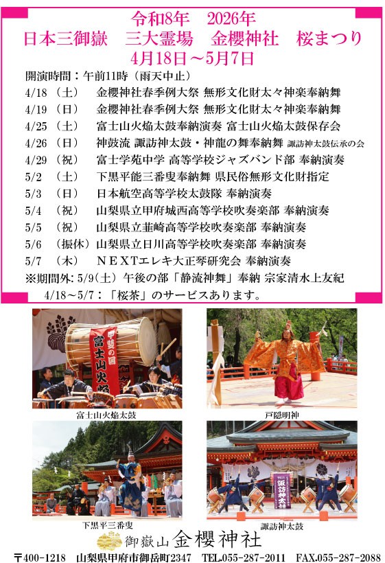 令和8年(2026年)御岳山 金櫻神社 春季例大祭