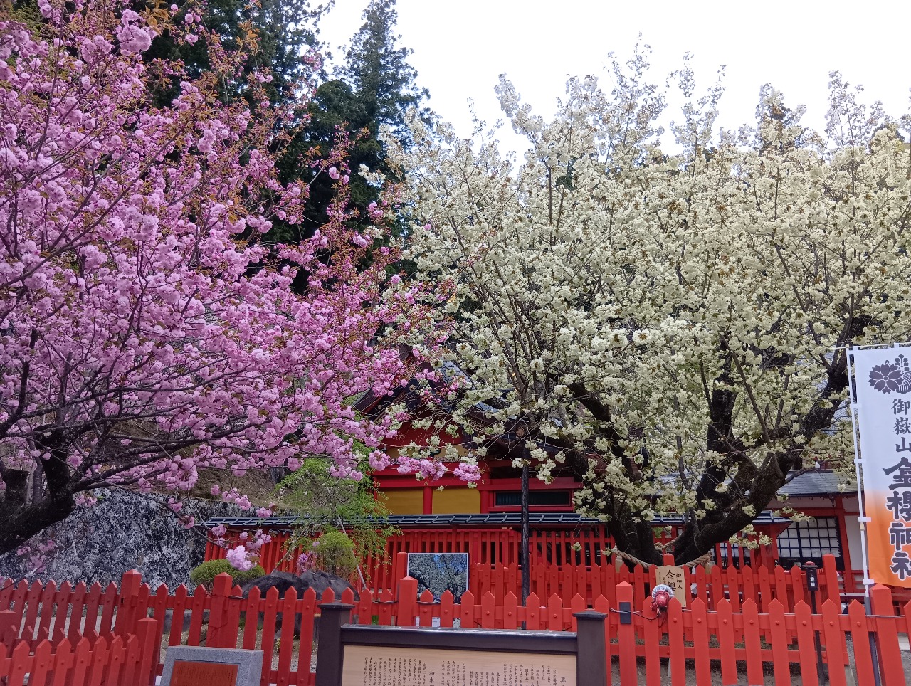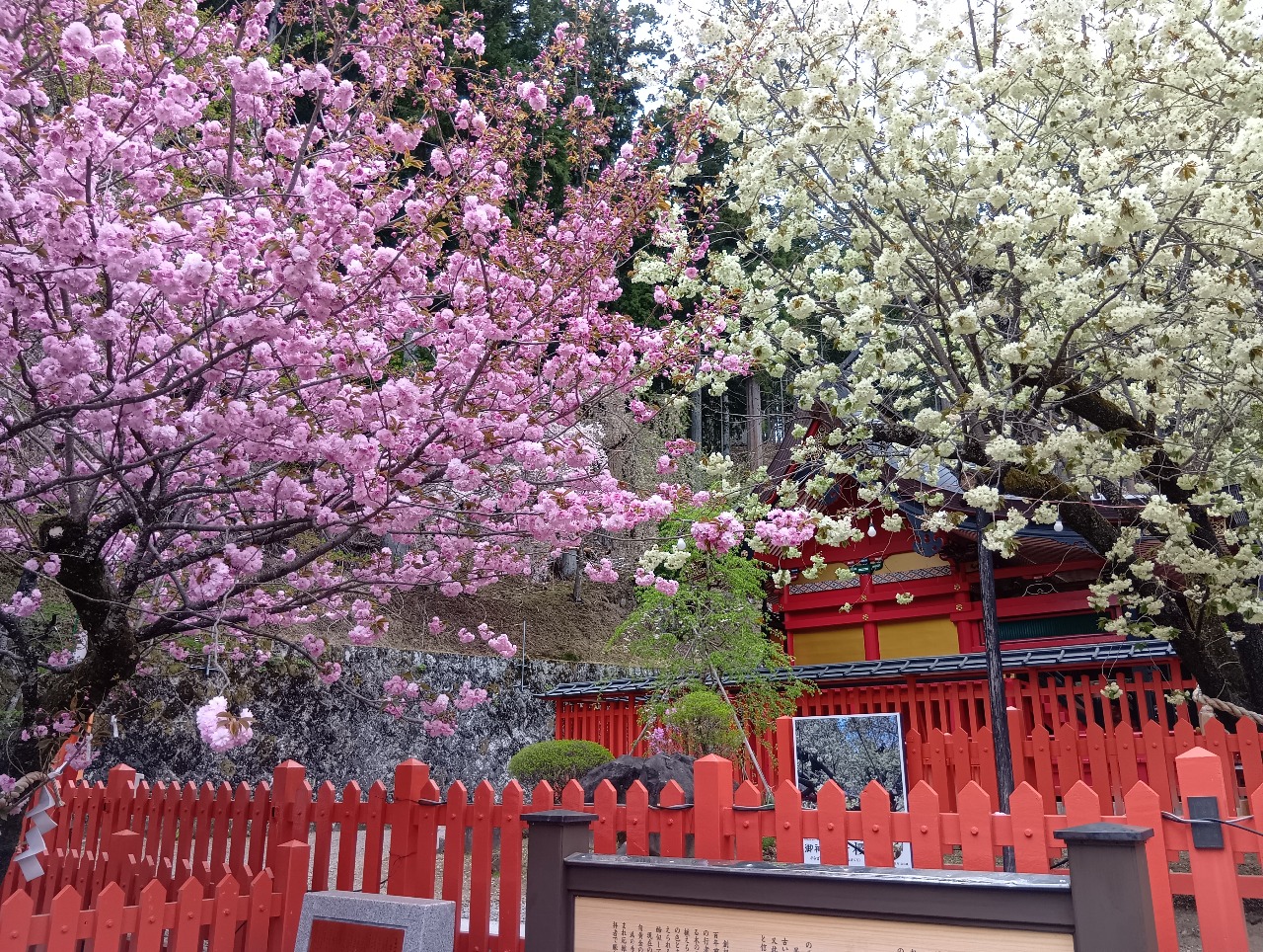 2026年4月19日 御神木金櫻「鬱金桜」と八重桜の様子 満開です 2026年04月19日 18:27 2026年4月19日 御神木金櫻「鬱金桜」と八重桜の様子遅くなりました!今日の午後3時過ぎに撮影した御神木金櫻「鬱金桜」と八重桜の様子です。 それぞれ満開です。