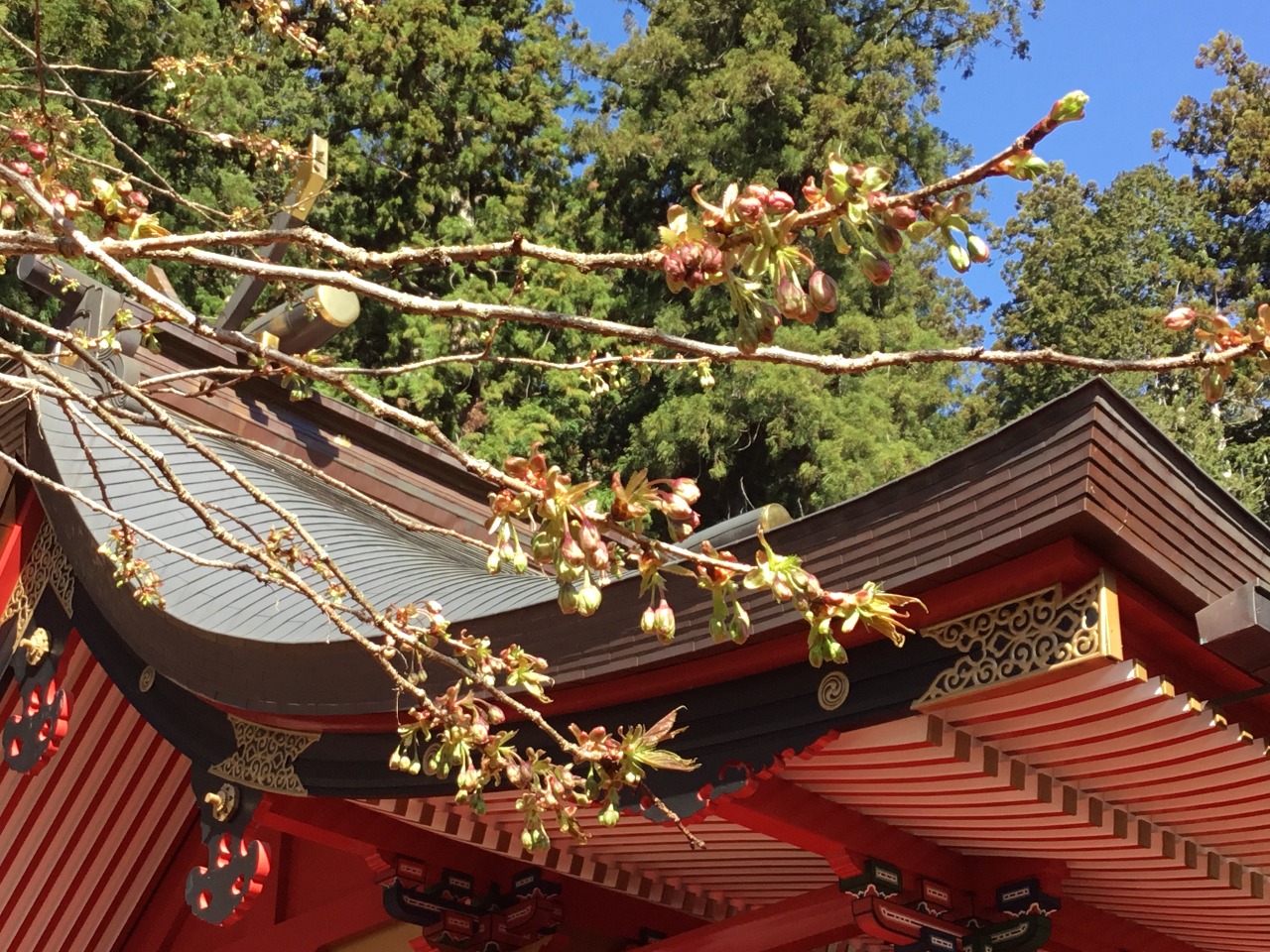 2026年4月11日(土曜日)午前中の桜の様子。 2026年04月11日 16:10 2026年4月11日(土曜日)午前中の桜の様子。ソメイヨシノ満開、枝垂桜満開御神木金櫻神社(鬱金桜)間もなく開花拝殿横鬱金桜開花 です。今日は1日気温が高かったので、さらに開花が進んでいると思います。