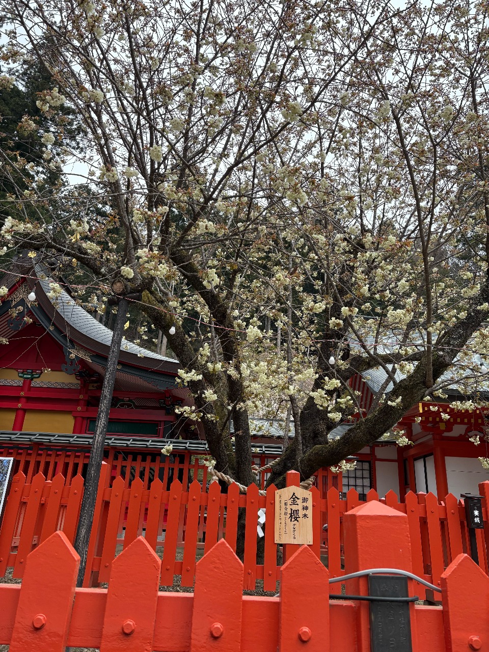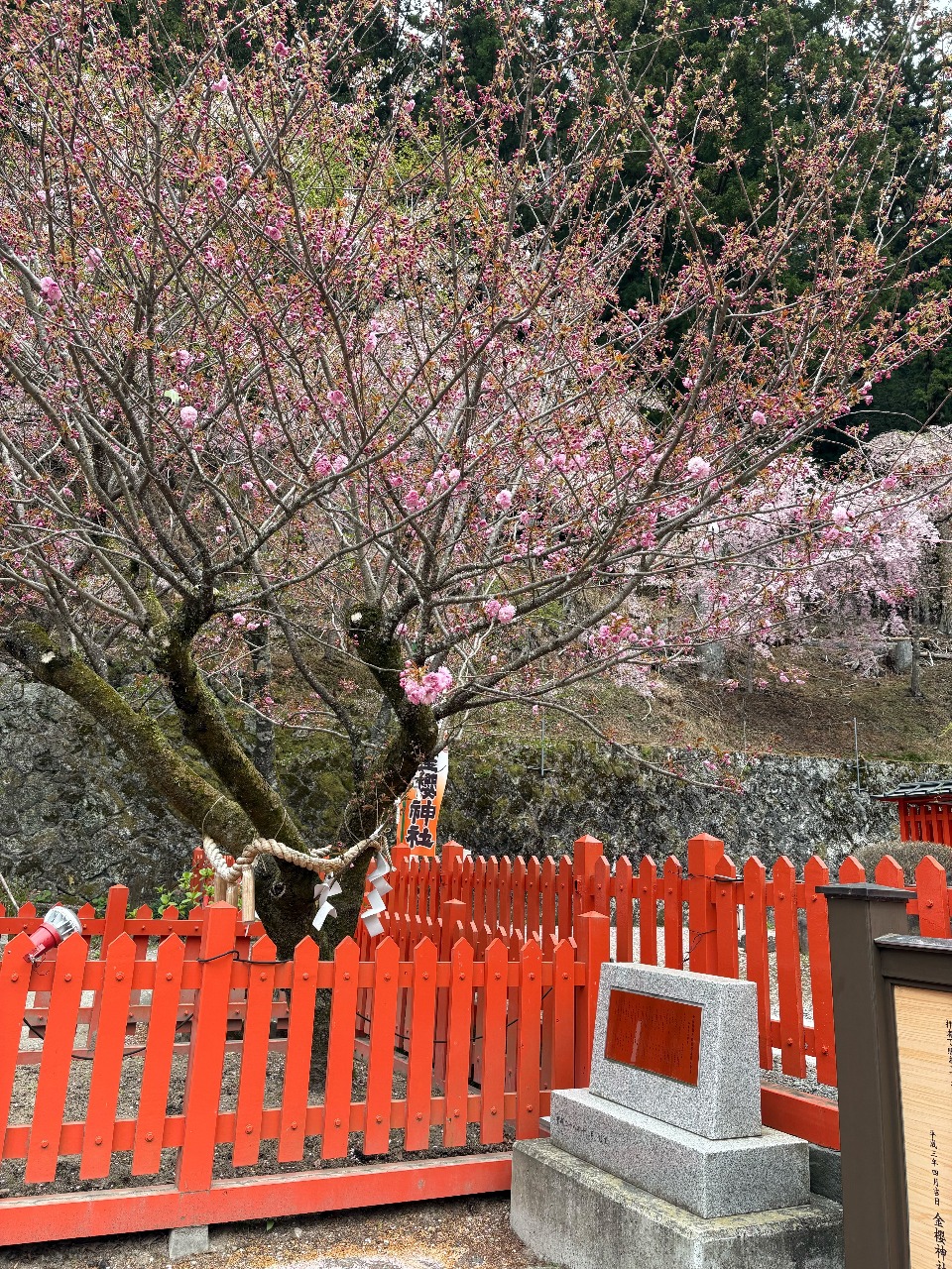 2026年4月15日 鬱金桜、八重桜、ミツバツツジの様子 2026年04月15日 19:12 こんばんは!今日の金櫻神社の花たちです。八重桜と鬱金桜それぞれ開花していて、ミツバツツジも開花合わせて開花し色とりどりの花が楽しめます。